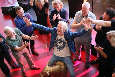 Se waren allemaal over de Afslútdyk naar Sneek komen, Kees van Kooten, un groat gedeelte fan de Klokhuis crew, Ben Rebel, Luc Runderkamp en gaan sumar deur. Un soad akteurs út Fryslaan dy’t der toe doën gaven acte de présence. Minsen út de weareld fan ut witte doek. Kòrtom al dy honderden minsen dy’t letterlek deur Arjen onder hannen nommen binne in de loop fan de jaren.