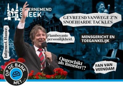 Een gesprek. Hoogte- en dieptepunten van een burgemeester die vooral burgervader wil zijn. Hij neemt na 7 jaar afscheid. Voor hij achter de geraniums verdwijnt zit hij bij ons op de bank. Hayo Apotheker. Bekend en geliefd in Súdwest-Fryslân. De gemeente die hij vorm gaf en door de woelige baren van de herindeling en fusies loodste. Flamboyante persoonlijkheid. Informeel. Humor. Mensgericht en toegankelijk. • Voormalig minister, een ambt waar hij volgens intimi totaal ongeschikt voor was. Wij willen weten waarom. • Maar ook voormalig eerste burger van de meest linkse gemeente van Nederland: Muntendam. Kent hij daarom de Internationale uit z’n hoofd? • Fan van Veendam, bestuurslid van Cambuur, ex-middenvelder van sc. Loppersum. Gevreesd vanwege z’n snoeiharde tackles. Is hij nog steeds zo meedogenloos? • En: speciale, verrassende, gasten. Dat en nog veel meer, tijdens de eerste editie van Op de bank met.., een nieuwe initiatief van Vereniging Ondernemend Sneek.