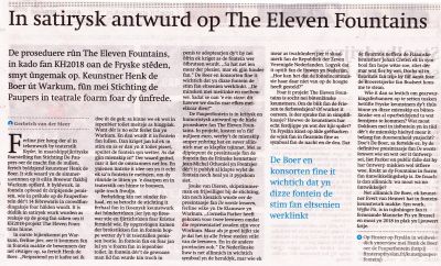 In ut Friesch Dagblad fan fandaach un prima artikel fan Gerbrich van der Meer over de 11Foutains. Ut FD is úteraard in de biblioteek te lezen en der binne ok nòch altyd minsen dy't abonnee op dizze Friese kwaliteitskrant binne!