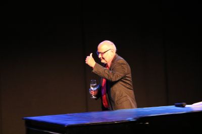 Het overvolle afscheidsprogramma eindigde met een prachtig ‘intiem’ ( Hetty, de vrouw van Ben van der Knaap weet er alles van!) optreden van Mini & Maxi, die de theaterdirecteur zo ver kregen dat hij zich volledig gestrekt op de vleugel begaf. Opnieuw zag Van der Knaap hoe het Sneker publiek ‘gretig en blijmoedig’ reageerde. Vervolgens was er in de foyer ruimschoots gelegenheid om Ben en Hetty van der Knaap de hand te drukken.