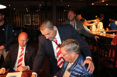 Na ut besoek an ut senúwsentrum ontfangst in Hotel De Wijnberg, dêr’t un útgebreid onbijt klaar staat. Tegare met de bestuursleden an tafel hearlek ete en opnieuw laat Bòlsert um fan syn bêste kant siën. Púre propagande foar de stad.