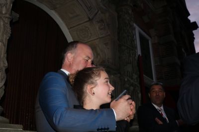 Onder ideale weersomstandigheden heeft de CvdK Arno Brok vanmorgen om vijf uur het startschot gegeven van de Fietselfstedentocht. Samen met wethouder Durk Stoker en gedeputeerde Sander de Rouwe stond Brok op het bordes van het monumentale stadhuis om de eerste groep van 15.000 fietsers uitgeleide te doen.