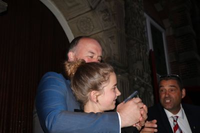 Voorafgaand mooie woorden, ontroerende optredens, fraaie cadeaus, gevolgd door een ovationeel applaus. Zie hier het afscheid van theaterdirecteur Ben van der Knaap, gisteravond in een ‘uitverkochte’ Sneker Schouwburg. Met Ben van der Knaap aan het roer ontstond er de afgelopen tien jaar nog al eens een overweldigende golfslag in cultureel Sneek/SWF. Zevenhonderd voorstellingen later, 300.000 bezoekers in ‘zijn’ theater zorgen ervoor dat de sympathieke Van der Knaap met een gerust hart afscheid kan nemen. ‘Waarom het verleden koesteren, waar de toekomst nog voor je ligt’, sprak de scheidend theaterdirecteur in zijn dankwoord.