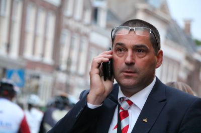 ‘At alle groepen om acht uur fertrokken binne, dan foël ik mij helemaal op myn gemak, mar ut is nou ok nyt su dat ik hier met bevende knibbels staan’, aldus Stephan. Goëd 15.000 fytsers doën der met en nyt allienech út Fryslaan en Nederlaan, nee su langsamerhaan ‘all over de world’. Na ontfangst met un bakje koffy bij de Groene Weide, bijprate met de Kommissaris fan de Koaning, Arno Brok. De man foëlt um wear helemaal as un goudfis in ut Friese water, hij straalt een en al fryndelekheid út. Toant oprechte belangstelling richting òrganisasy en deelnimmers.