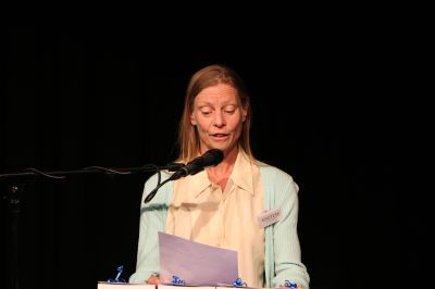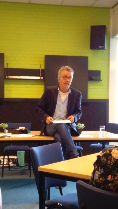 Aly van der Mark las poëzy en proaza út ut boek foar. De middach ston onder prima leiding fan Friduwih Riemersma (útjouwerij Grotesk).