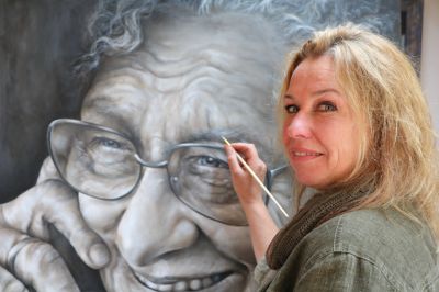 Voordat we over het project praten, eerst even een korte introductie wat beeldend kunstenares Imke Meester doet. “Ik werk in verschillende disciplines en dat heeft alles te maken met de ruime interesse en fascinatie die ik heb in diverse technieken en materialen. Zoals je hier in het atelier al kunt zien is mijn werk nog al veelzijdig. Je mag mijn stijl realistisch dan wel imaginair realistisch noemen. Mijn olieverf schilderijen zijn gedetailleerd, maar ik maak ook sculpturen in brons, marmer en mixed media. Als je een rode draad in mijn werk wilt noemen dan is dat toch wel vrijheidbeleving in alle facetten.” Veetel alles over het project ‘Meesterlijk Sneekers’ waar je nu mee bezig bent, ik zie dat je bezig bent met een schitterend portret van Jikke van der Horst-Osinga. Ik ben heel nieuwsgierig, wat heeft zij met dit project te maken? Meesterlijk Sneekers