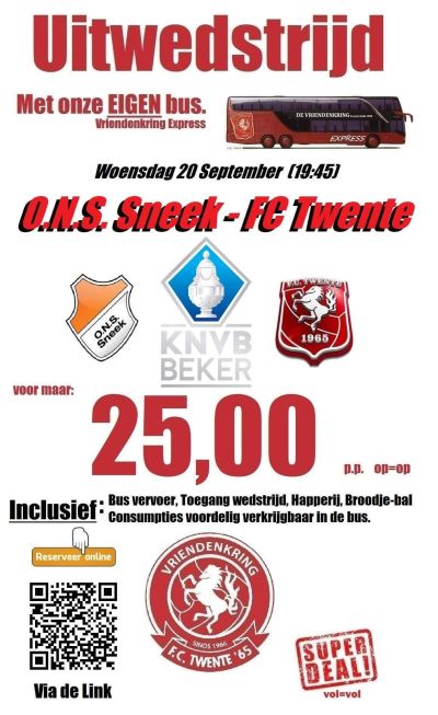 Volgende week spelen de Snekers tegen Jong FC Twente, die wedstrijd wordt in Hengelo gespeeld. Waar de bekerwedstrijd tegen de grote broers van Jong FC Twente wordt gespeeld is nog onbekend. Na dinsdag weten we ongetwijfeld meer.
