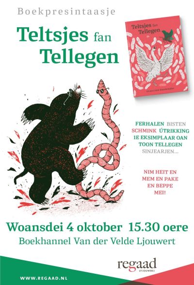 “Teltsjes fan Tellegen” ferskynt by Utjouwerij Regaad, is yn kleuren yllustrearre troch Douwe Dijkstra en oerset troch Anne Tjerk Popkema. De priis fan it boek is € 15. It program is fan 15.30-17.30 oere, de tagong is fergees, en opjefte is net nedich.
