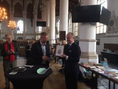 Fanmiddach kwamen in de Franeker Martinikerk rúm 100 minsen bij mekaar om te lústeren naar kòrte interviews dy’t Asing Walthaus had met ferskillende stadspraters. Bauke van der Woude en Campbell Forbes songen in ut Stads. Kommissaris fan de Koaning, Arno Brok mocht ut earste eksemplaar fan ‘De sprookjes fan Grimm in ut Stadsfrys’ in ontfangst nimme.
