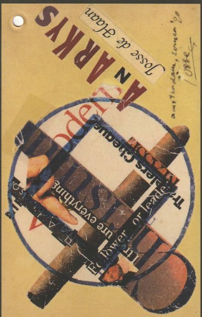 Ik bin der hartstikkene blij met dizze bundel anarky’s! Wat anarky’s binne? Josse de Haan: “Ofkoarting/fertichting fan anargistysk lykje; basearre op de âlde kollaazjetechniken fan de surréalisten; ek in assosjatyf prosedee, dêr’t de eleminten taal en byld osomotysk ynelkoar skowe; soms neamd: konkrete of fisuele poëzij’.