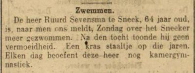 Hij was een verwoed zeiler en blijkbaar ook zwemmer, getuige onderstaand bericht in de Leeuwarder Courant van 10 juli 1923: