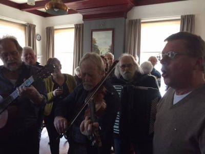 Hylke Tromp sanger/fioalist, Jan Willem Bleijswijk gitarist en sanger fan de gefoëlege ferskes en Joop de Jong, sanger en akkòrdeonist wisten ut ouwere públyk bêst te fermaken. Un feest fan herkenning 'Dan komt de maitiid...') , wêrbij’t op un gegeven moment selfs ut psalmbòrd fan’e muren kwam. Gelukkech gyn gewonden!