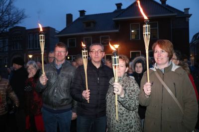 Nadat gisteravond vanuit de RK parochie aan de Singel het licht was opgehaald en mee genomen door verschillende geloofsgemeenschappen naar een woning in de vier verschillende wijken van de stad, werd datzelfde licht in processie terug gebracht naar de Martinikerk.