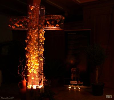 De afgelopen nacht werd er in de Martinikerk gewaakt, waarbij sommigen de hele nacht gebleven zijn. Ieder uur werd er een Bijbelgedeelte gelezen en vervolgens iets met het verhaal gedaan. Rondom de kerk lag een groot hart van waxinelichtjes, in de kerk een groot kruis van gaas waar voorjaarsbloemen in gestoken werden. Bezoekers konden op grote houtsnippers iets schrijven en achterlaten. In alle vroegte werden deze beschreven hotsnippers in een vuurschaal gedaan, waar het Paasvuur het persoonlijk leed verbrandde.