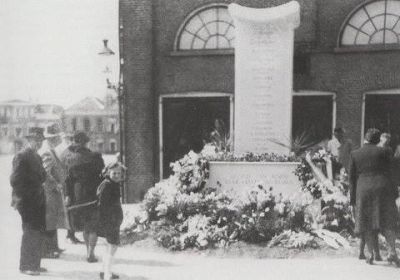 Op ut plak dêr’t de Waach in flammen opging wurdde in Sneek al gau un tideleke gedenksuil oprichten. Hierop de namen fan de oarlòchslachtoffers. Foar de herdenkingsplechtechheden fan mei 1946 plakfonnen, ston ut tidelek gedenkteken al op ut Oud Kerkhof, flak bij ut plak dêr’t ut definitieve monument bij de Groate Kerk staat. Dat monument wurdde op 4 mei 1950 onthuld deur Meta Lever, dy’t in de oarlòch har fader en twee broers kwytraakte deur oarlòchsgeweld.