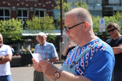 Applaus klinkt op in het zonovergoten stadscentrum van Sneek. Niet van bobo’s, niet van pommeranten, nee van het volk van de straat. Daar staat Ronny zijn bakfiets na te druppelen van het bier. De kunstenaar geeft uitleg, voor zover nodig.