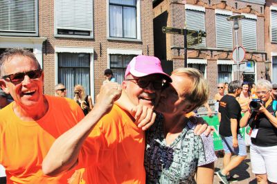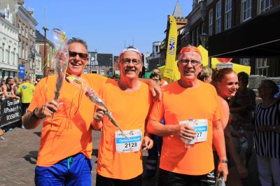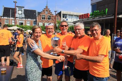 En hieltyd mar wear de anmoedigingen! Deurgaan! Jum bin der hast. Set’um op mannen. Klasse! En Age en ik mar lache! Peter was al in gyn felden òf wegen mear te bekennen. Ut tweede rondsje, op ut Bolwerk na ( binne we op de Alp d’Huez…) ut Oud Kerkhof foëlt as un befrijding en de Marktstraat? Wat un ontfangst, wat un euforys moment om na su’n bloëdhite 4 Mijl over de streep te gaan.