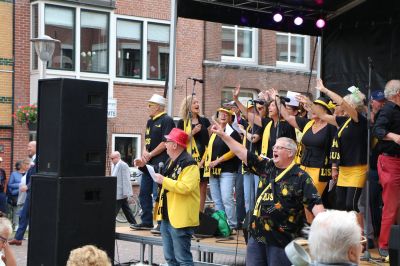 Fokko Dam dirigent van het LUS-koor haalde terecht Van der Meeren aan, want daar gaat het uiteindelijk om tijdens het Groate Sneker Metsingfeest in de Marktstraat. Samen plezier maken en uit volle borst meezingen. En dat deed het veelal wat oudere publiek vol overgave.