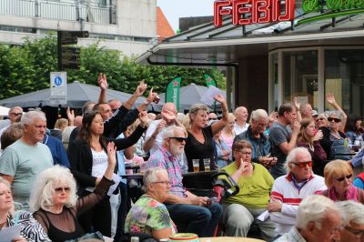 Voorzitter Kees Poiesz die we tijdens ons rondje Ut Sneek tegen kwamen was dan ook dolenthousiast: “Het loopt als een tierelier en het weer kan natuurlijk niet beter!” De terrassen, waaronder die aan de Wijde Noorderhorne, waar voor het eerst twee podia aanwezig waren tijdens Ut Sneek, zaten dan ook allemaal vol.