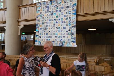 Ut is op’e kòp ou 25 jaar leden dat der onder besielende leiding fan Klazien un begin maakt wurdde met ut maken fan un Quilt foar de Martinikerk òf op syn Snekers de Groate Kerk. In 1993had der krekt un grondege restaurasy plakfonnen fan ut monumentale gòdsgebou. As un kreatieve Ali Baba begonnen Klazien en 40 frouwen in de bijsalen fan de Ichtuskerk an ut maken fan un reusachtege quilt dy’t un plakje krije moest in de Groate Kerk. De quilt bestaat út sterren, hemellichamen dy’t un houfast binne foar minsen dy’t onderwech binne. Ut wurdde un pronkstuk fan mar liefst 5500 lapkes. Dy quilt hangt nou over de kraak hier in de kerk. Wat un foarrecht foar al dy dominees dy’t hier foargaan magge: sij hewwe un geweldech moai útsicht op dizze bysondere quilt.