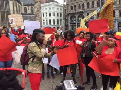Ston ik fanmiddach sumar midden in un groep Oegandezen dy’t de straat (= De Dam in Amsterdam) op gingen om te protestearen teugen de gefangennimming fan Bobi Wine.