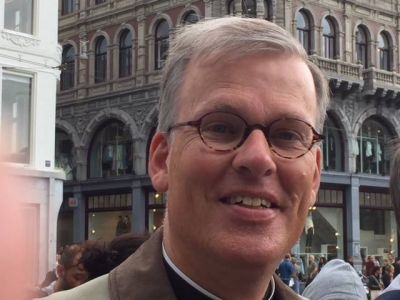 En pastoar R.B.J.J.M. Scheltinga. "Ik kom út Bòlsert!" 'Oh, dan kan ik ok wel Snekers met Jou prate!' "Doëst de groëten mar an Peter van der Weide!"