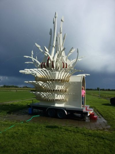 Goënga- Afgelopen zaterdag heeft wethouder Stella van Gent de Byldeslinger, een kunstroute vanuit Goënga geopend. De genodigden en anderen liepen na de opening langs de beelden en kwamen onderweg ook de Pauperfontein tegen van kunstnaar Henk de Boer die uitleg van zijn project gaf.