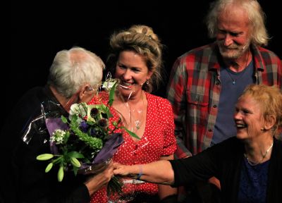 Tidens de première fan ut Frystalige stuk was Arthur Japin in ut bútenlaan en kon sudoënde nyt anwezig weze. fanmiddach was hij de dus wel in Theater Sneek en kreech na ouloop bloemen en un daverend applaus fan de útferkochte Sneker skouburch.