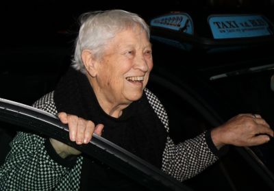 Lachend staat Greetje op’e foto hier boven: In de taxi onderwech naar oans Liëve Hear! Want dat se dêr is, twifel ik gyn sekonde an!