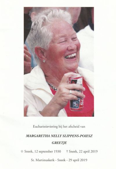 Fanmòrren is Greetje Slippens-Poiesz overleden. Ondanks har hoge leeftyd, se mocht 88 jaar wurde, en broaze gesondheid skrok ik tòch fan ut bericht. Ik bewaar allienech mar goeie herinnerings an har, echt allienech mar fijne andenkens.