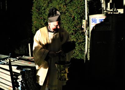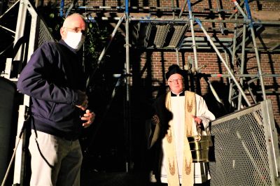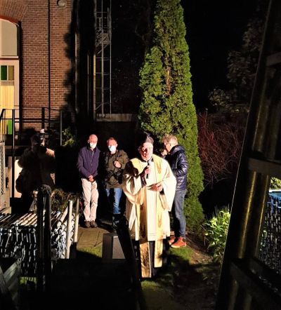 Zodoende werd het heilige Roomse inwijdingsritueel door de pastoor en z’n grote Baas gedaan op deze laatste oktoberdag van 2020. Ook nog eens Wereldhervormingsdag. De plechtigheid werd in de tuin van de RK pastorie gevolgd door parochianen, waaronder ook een aantal jongeren.