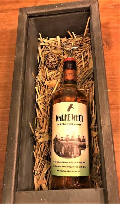 De bijfangst was de stank fan un écht ouwerwets húske dêr’t ik pisse kon. De geur fan ut Friese plattelaan. Un andere bijfangst was un bysòndere fles drank (40%) met de naam Warke Weet, opburgen in un moai kistke.
