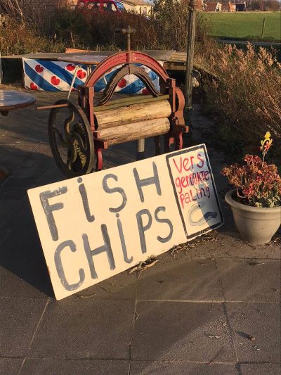 Nou sitte der op un corona sundachmiddach minsen an un bakt fiske met manjefyk útsicht over wat froeger de Súdersee was.