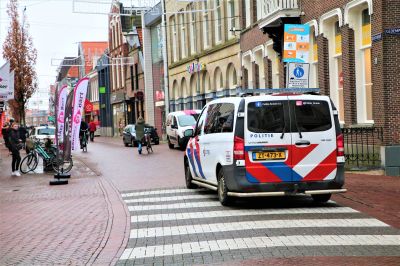 Wel reed een politiebusje over ‘Ut Oasterdyk’ om de boel hier en daar in de gaten te houden. Nergens voor nodig, want het is op een nieuwsgierige toeschouwer na, rustig in de binnenstad.