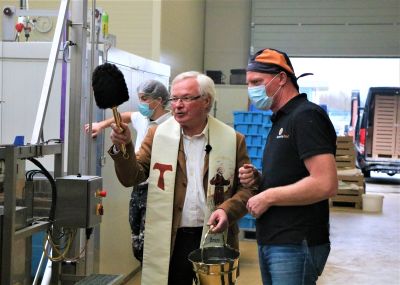 “Nou, niet helemaal uniek hoor”, antwoordde pastoor Peter van der Weide. “Het is de derde keer dat ik oliebollen inzegen. Trouwens het gaat helemaal niet om die oliebollen, dat begrijpt ieder weldenkend mens wel. Het gaat om het verhaal wat erachter zit. De mensen die vanmiddag in de verschillende huizen een oliebol krijgen, daar is het om te doen. Wat heerlijk dat je het nu eens niet over corona hoeft te hebben”, weet de pastoor. Gewapend met de geelkoperen wijwateremmer en de kwast beende Van der Weide door de grote hal waar duizenden oliebollen en appelbeignets door Venemafood worden geproduceerd op hightech niveau. De lekkernijen gaan o.a. naar supermarktketen Poiesz. Tijdens deze drukke dagen aan het eind van het jaar werken er maar liefst 120 mensen bij Venemafood.