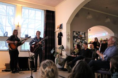 Het laatste optreden wat wij bezoeken is de voormalige lagere landbouwschool, dat nu omgebouwd is tot een fraaie woning. Genoeg ruimte om te spelen dus. Twee heren van The Beatles Sessions, een Friese tributeband, zoekt ook de interactie met het 40-koppige publiek. Die wisselwerking tussen de beide heren en de aanwezigen is er zeker. Bekende (verzoek) nummers worden gespeeld voor een divers publiek, van jong tot oud. Het Hey Jude klinkt uit vele kelen in de voormalige agrarische school als we afscheid nemen.