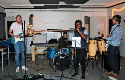 Na een halfuurtje verlaten we de Westereems en gaan we naar het AZC in de Noorderhoek, een volkomen andere locatie. Daar worden we opgevangen door medewerker Ruben, die ons naar een van de units leidt. De band Milfshake is al aan het spelen en zoekt duidelijk de interactie met het publiek, veel bewoners van het AZC, die dan ook meespelen. Een hele andere setting met jonge gezinnen, een echt uitje voor de bewoners. Het doorbreekt de sleur van het eindeloos wachten. Muziek verbindt!