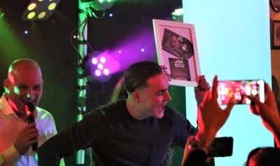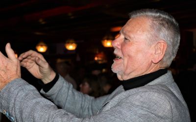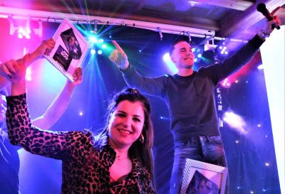 Terwijl oma voor de omzet zorgde, liep haar kleinzoon door de zaal, kusje hier kusje daar, voor iedereen een praatje: “Als je uit de grond van je hart zingt is het altijd goed. Ik houd van het oudere levenslied en smartlappen. Mensen blij maken en een gezellig feestje vieren, dat wil ik met mijn zingen doen. En natuurlijk een beetje geld verdienen. Maar ik blijf wie ik ben!”