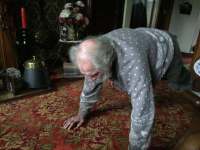 Ondertussen hebben we kostelijke bezoekjes aan Hensema z’n favoriete tante in Groningen gebracht. Kostelijk mooi hoe hij het tante-typetje speelt! De kassadame van de Action is trouwens ook een juweeltje! En het alcoholverslaafde poedeltje mag er ook zeker zijn. GEWELDIG! Uiteindelijk komt Hensema weer terug bij z’n vrouw en kinderen, bakt ovenverse croissantjes en zet een geurkaarsje aan, Morning Mist. De rook komt uit het vintagevest van Hensema en drijft zo de zaal van Theater Sneek in.