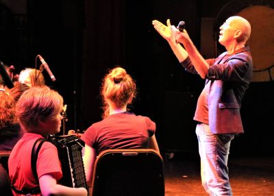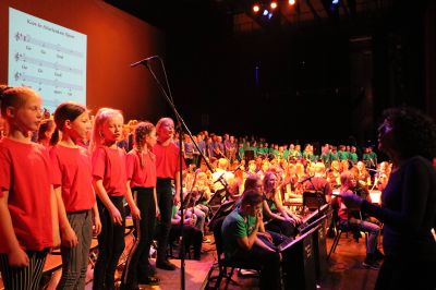 Op vrijdag 28 februari en maandag 2 maart kwamen alle koorleden bijeen op csg Bogerman om samen te repeteren met ruim 50 leerlingen uit het voortgezet onderwijs, die muziek maken in de begeleidende Bogerman-orkesten. De muzikale en creatieve leiding is in handen van Anne Oosterhaven en Clara Rulman, ondersteund door muziekdocenten van csg Bogerman Joke Krist en Sjoerd Hiemstra. Stuk voor stuk stimulerende muziekleerkrachten die het verschil maken met veel andere scholen.