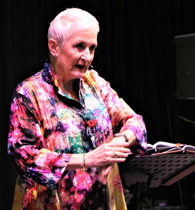 An ut end fan de geslaagde dach trad Inez Timmer op, met o.a. twee fesen út har ‘Holocaust-Hollywood- De kinderen van Ilse Weber’- progamma. Ik fon ut indrukwekkend.