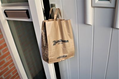 Fanmiddach hing der un taske met lekkers an de deurkruk fan de Zuivelhoeve!