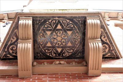 Het was al bekend dat de onderzijde van de erkervloer bewerkt was en de afbeelding van een fraai versierde Davidsster is jarenlang achter lagen verf en een grote luifel verstopt geweest.