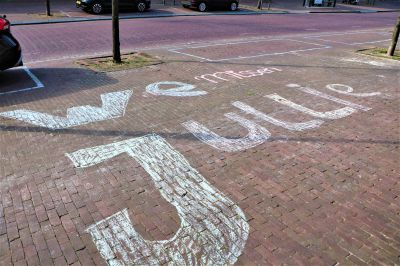 Sneek- Als je op straat loop, het kan in deze coronatijd gelukkig nog in Nederland, kom je overal fraaie stoeptekeningen en bemoedigende boodschappen tegen. Zo ook op de Singel in Sneek. Dat (kleinkinderen juist op een dag als vandaag hun grootouders/pakes & beppes missen moge duidelijk zijn. Op de hartenkreet lag ook een buxustakje. Op de zaterdag voor Palmpasen, dat was vorige week zondag, heeft pastoor Peter van der Weide van de Sint Antonius van Padua parochie, tijdens een besloten Palmpasen viering de palmtakken voor de parochianen gewijd.