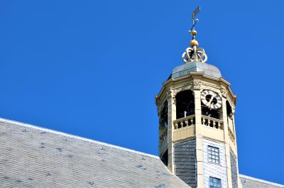 Un strakblauwe lucht rond de koepel fan de Groate Kerk. Kòrtom de ogen wear goëd open had!