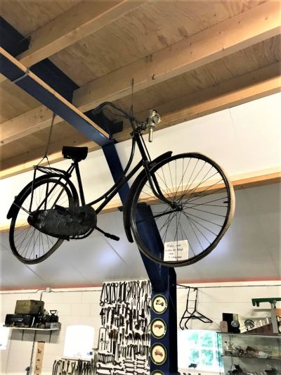 "Oh, fynsto dy fyts oan it plafond bysûnder? Sjoch ik ha der in kaartsje by hongen, it is de âlde fyts fan Hinke en Pietsje fan ’t Langead. De karbidlampe sit der noch op. At ik dy fyts hingje sjoch moat ik ek altyd oan it ferhaal fan de houtkachel tinke."