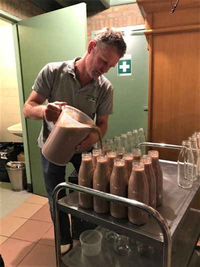 Na ut interview in ut dòrp binne Tom en ik naar boerderij De Oorsprong gaan naar Freek en Marieke, dy’t der un groepsakkomodasy/kampearboerderij en melkfeehouderij hewwe. Sinds twee jaar make se ok Boerenyoghurt en Boerenfla. Ferrekte interessant.