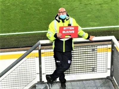 Stewards met SC Heerenveen moankapkes foar! Disiplineard in de rij staan! In ut stadion mear as genoech oustaan fan mekaar. Ut Frys fòlksliet diskear út de lúdsprekers, sach dat Syb van der Ploeg opnommen was op de middenstip!