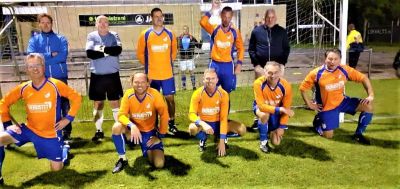 De skeer van Van der Veer. We moesten er gisteravond tuvergeefs op wachte, net su as OóÈnÈS 45+ vorig seizoen lang op 'n skamel puntsje moest wachte. Dit seizoen liekt de ploeg echter over nij eelan te beskikken, want gisterafond bouwden de oranje mansjes op De Bou aan un indrukwekkende reeks. En ... as dat jonkje van Rutte binnen nou en een dag of veertien op'e nij tot een sluuting besluut, dan staat d'r binnenkort op ut Suudersportpark - en dat is lang leeden - toch un kampioensrecepsie op de agenda. Vier speult, vier wonnen en dat ok nog 's op un soevereine wieze. Dat begon al in de eerste wedstried, ondanks dat OóÈnÈS toen hun sterkhouders an de kant hield. Zonder de al genoemde Van der Veer en Van Bruggen moest de Wéé Péé Béé dat vorig seizoen met twee vingers in de neus de skaal won, disse keer een bittere pil slikke en de 2-1 uutslag was eigenlijk een magere afspiegeling van de verhoudingen, al zorgde Janco Croes met een solo à la een Balinese daanserès wel voor un wonderskone aansluuting.