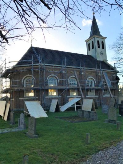 Ut nieuwa was in Offingawier dêr't ut prachtege dòrpskerkje un opknapbeurt krijt. Toen ik de foto's maakte hoarde ik múzyk fanou de steigers. Nee, ut waren gyn psalmen...